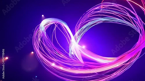 Wall mural : Colorful light trails are moving and forming an abstract shape with a black or gradient background