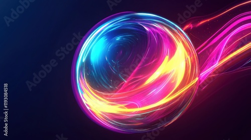 Wall mural : Colorful light trails rotating around sphere creating abstract visual effect