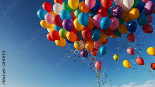 Colorful luxury clear balloons floating in the sky - copy space concept for wallpaper or backgroundWall mural