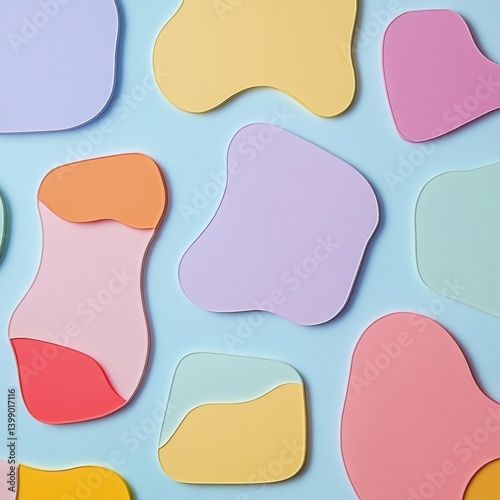 The watermark will not be included on Wall mural.: Colorful minimalist label stickers arranged on a light blue background with empty spaces for customi