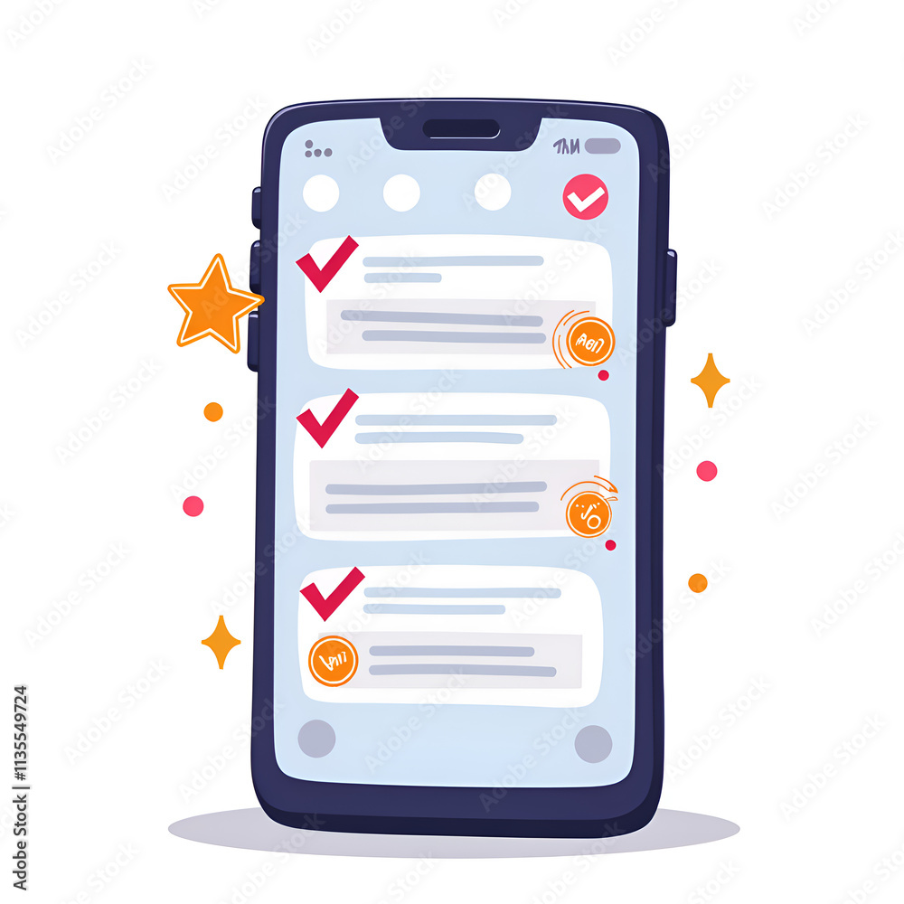 The watermark will not be included on Wall mural.: Colorful mobile app interface featuring message notifications and interactive elements, digital illu