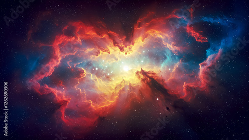 The watermark will not be included on Wall mural.: Colorful nebula in deep space with stars