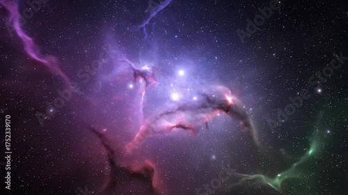 The watermark will not be included on Wall mural.: Colorful Nebula in Space - A vibrant and colorful nebula is depicted, with flowing abstract shapes and a backdrop of countless stars -