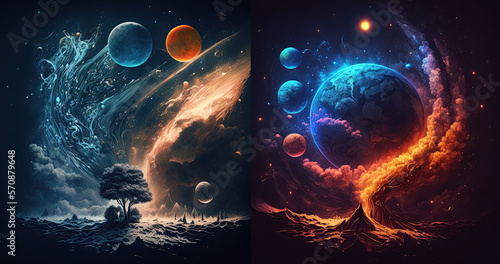 The watermark will not be included on Wall mural.: Colorful outer space with constellations, galaxies, planets and nebulae - generative ai