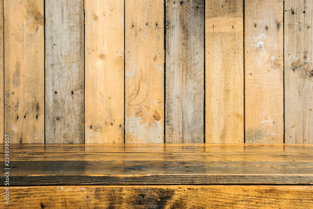 The watermark will not be included on Wall mural.: Colorful paint coated wood boards fragment as a background composition with a shallow depth of field