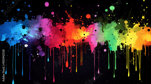 The watermark will not be included on Wall mural.: Colorful paint splashes creating an artistic explosion on a black background in a modern art setting
