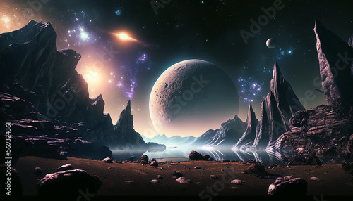 Wall mural : Colorful planet in space with moons and galactic nebula - space wallpaper acryl background created wi