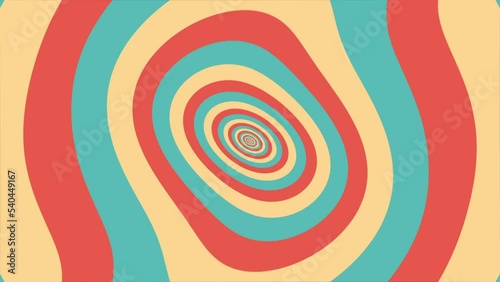 Colorful retro 1970s warped circles pattern background with gently moving circles in warm vintage coWall mural