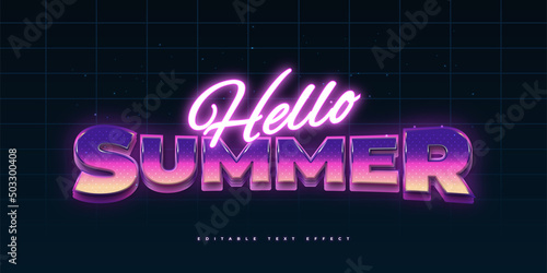 Wall mural colorful retro and neon text style effect. hello summer text style