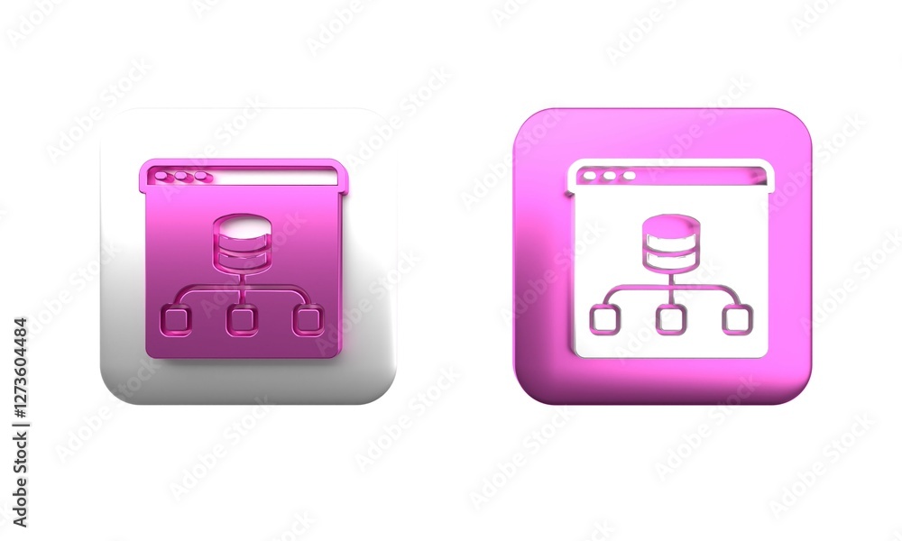 The watermark will not be included on Wall mural.: Colorful server, data, web hosting icon isolated on white background - square button - 3d render illus