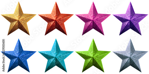 Wall mural : Colorful set of five-pointed glitter stars isolated on empty background