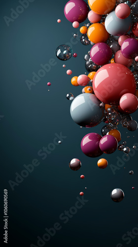 Wall mural : Colorful shiny 3d bubbles floating in dark background, creating vibrant and dynamic visual effect - a