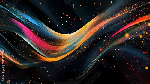 Wall mural colorful sparkling particles swirling through vivid abstract flowing line patterns design