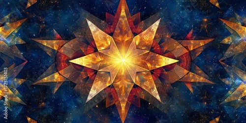 The watermark will not be included on Wall mural.: Colorful starry sky with a large yellow star in the center - the stars are scattered throughout the s