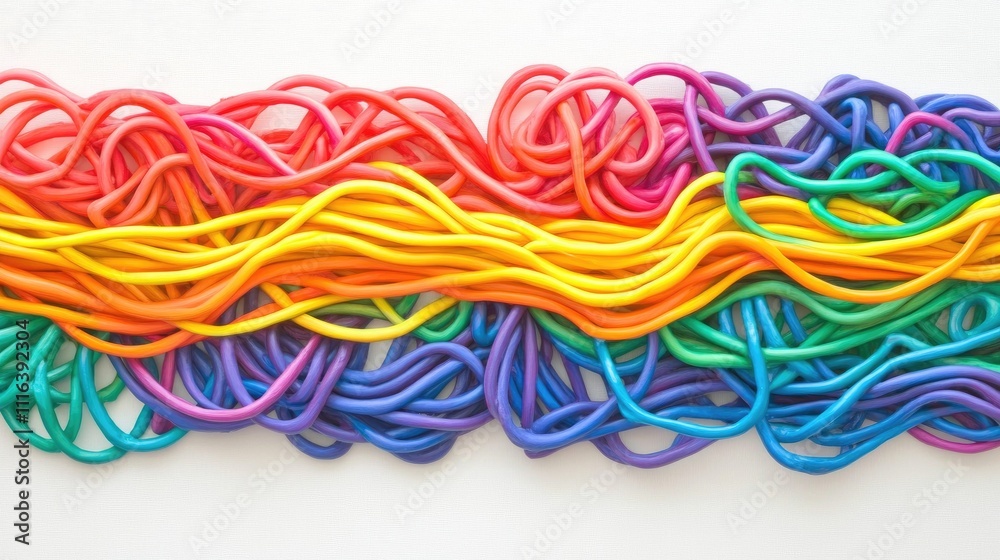 The watermark will not be included on Wall mural.: Colorful tangled communication lines representing complexity and connectivity in modern communicatio