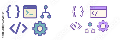 The watermark will not be included on Wall mural.: Colors and shapes showing computer programming concepts with symbols and icons illustrating coding a