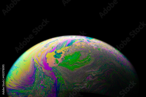 Wall mural colourful bubbles. abstract galaxy background with globe planet earth in universe space with sunligh