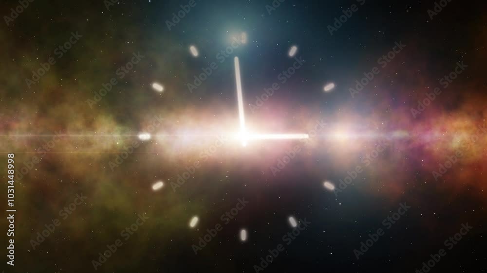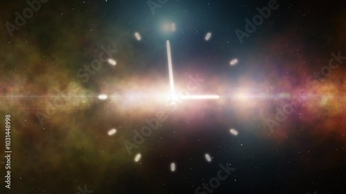 The watermark will not be included on Wall mural.: Colourful dark space with loop time clock animation -