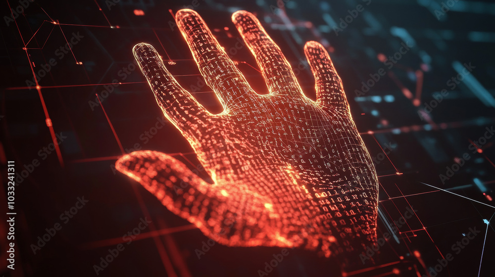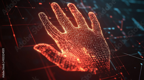 Wall mural combining handprints with computer code to protect information and keep things safe.low poly digital - Wall murals Wall mural combining handprints with computer code to protect information and keep things safe.low poly digital - Wall murals