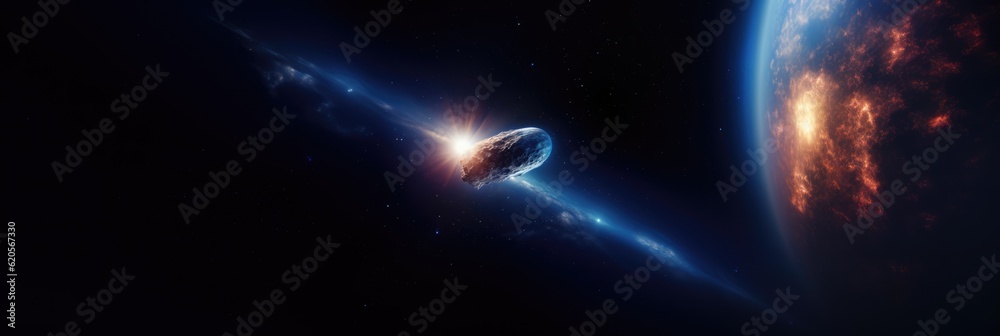The watermark will not be included on Wall mural.: Comet in space with glowing light and stars over earth, created using generative ai technology
