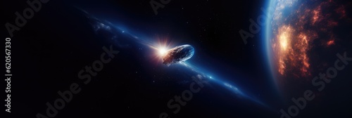 Wall mural comet in space with glowing light and stars over earth, created using generative ai technology - Wall murals Wall mural comet in space with glowing light and stars over earth, created using generative ai technology - Wall murals