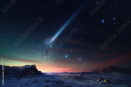 Wall mural : Comet passing by earth with distant galaxies, created with generative ai