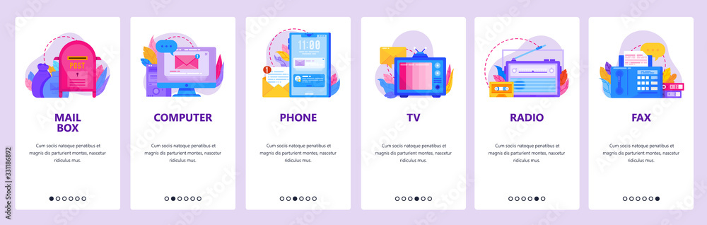 Wall mural : Communication website and mobile app onboarding screens vector template