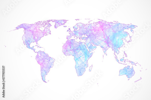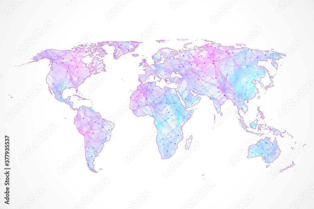 Wall mural communications network map of the world. map of the planet. plexus world map. global social network.