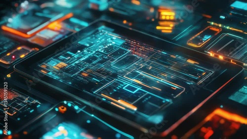 Wall mural complex data analysis and processing information are displayed on a futuristic, transparent tablet s - Wall murals Wall mural complex data analysis and processing information are displayed on a futuristic, transparent tablet s - Wall murals