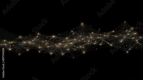 The watermark will not be included on Wall mural.: Complex geometric shape created by abstract network of dots and lines against a black backdrop