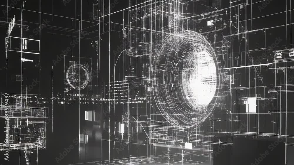 Complex wireframe structure illuminating dark digital environmentWall mural