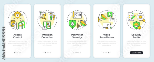 Wall mural : Components of physical security systems onboarding mobile app screen - walkthrough 5 steps editable g