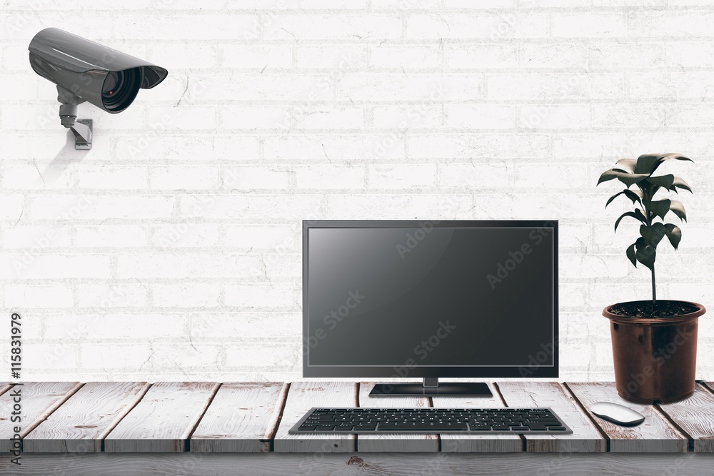 The watermark will not be included on Wall mural.: Composite image of a computer over a desk