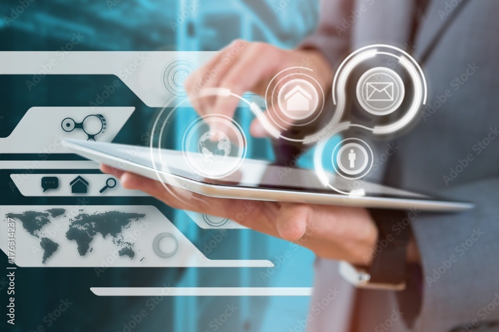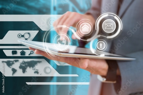 Wall mural : Composite image of midsection of businessman using wireless