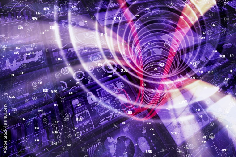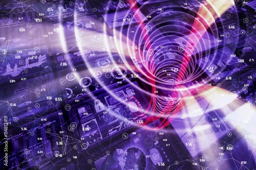 Wall mural composite image of sphere of icons and numbers
