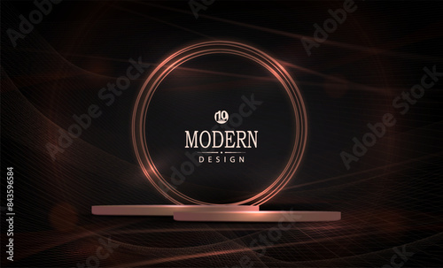 Wall mural : Composition with a round sparkling frame, podium and wavy mesh pattern -