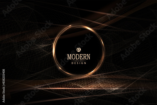 Wall mural : Composition with a wavy mesh pattern and a round frame in a gold tone -