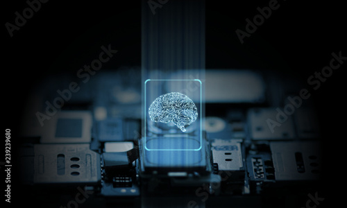Wall mural : Computer and mobile phone system is operated by artificial intelligence hardware chip set - glowing b