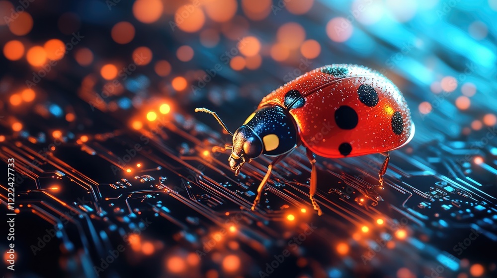 Wall mural computer bug concept with ladybug standing on computer circuits , troubleshooting and debugging conc - Wall murals Wall mural computer bug concept with ladybug standing on computer circuits , troubleshooting and debugging conc - Wall murals