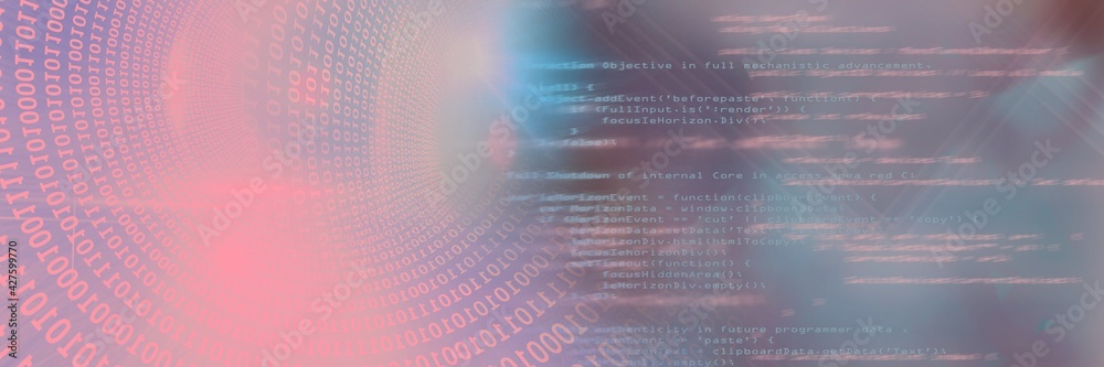 Wall mural computer code funnel and data processing against gradient background, program coding concept