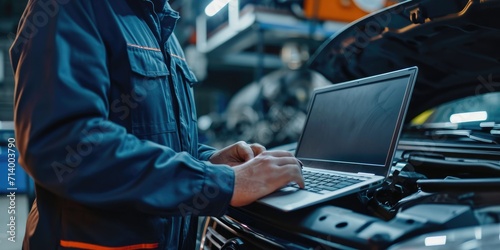 Wall mural computer diagnostics. an automotive mechanical technician using laptop computer programming. car mai