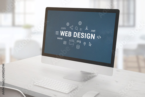 Wall mural computer display with web design text and web page, app graphic elements. web design studio clean wo - Wall murals Wall mural computer display with web design text and web page, app graphic elements. web design studio clean wo - Wall murals