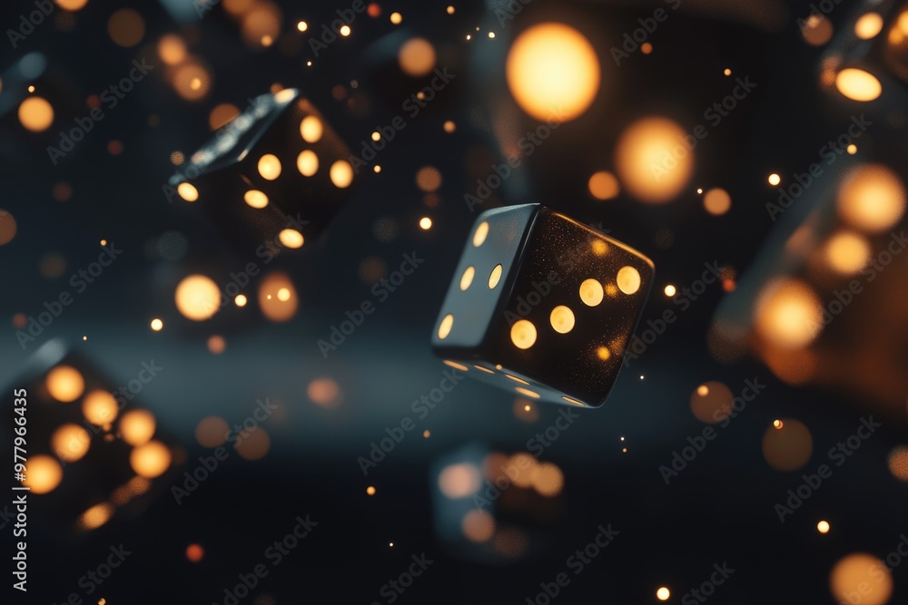 Wall mural computer generated 3d image of dice against light circles on black background - Wall murals Wall mural computer generated 3d image of dice against light circles on black background - Wall murals