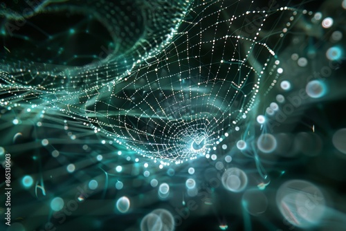 Wall mural computer generated green and black background resembling a digital web of connections, a web of digi