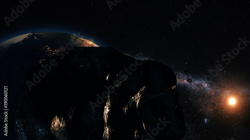Wall mural : Computer generated image of an asteroid coming close to planet earth - conceptual image