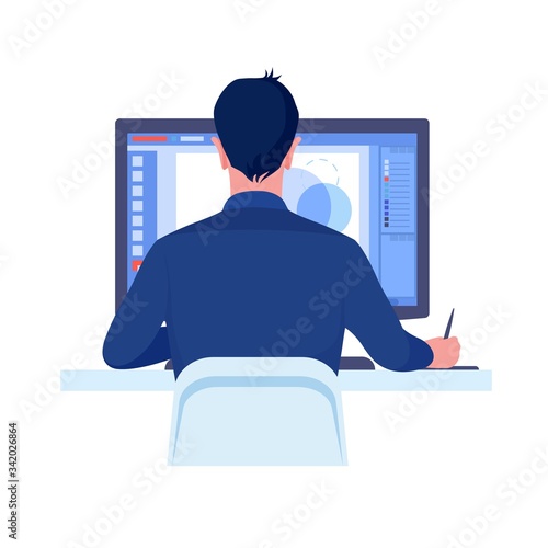 The watermark will not be included on Wall mural.: Computer graphics designer work on desk in office concept - vector