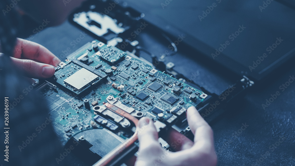Wall mural computer hardware development. microelectronics technology science concept. engineer holding modern  - Wall murals Wall mural computer hardware development. microelectronics technology science concept. engineer holding modern - Wall murals
