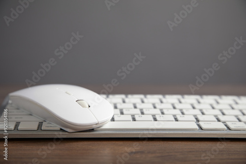 The watermark will not be included on Wall mural.: Computer keyboard and mouse on the table -