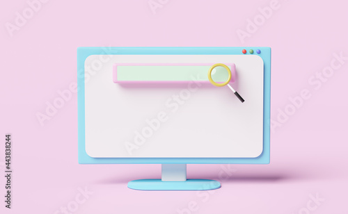 Wall mural computer monitor with blank search bar isolated on pink background. ,minimal web search engine or we