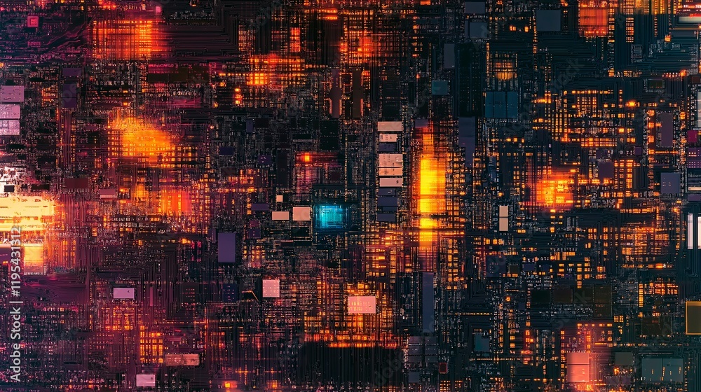 The watermark will not be included on Wall mural.: Computer motherboard with processor - computer circuit board with neon light -